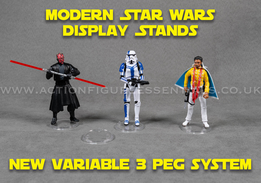Modern Star Wars Action Figure Display Stands - New 3 Peg Variable System - TVC